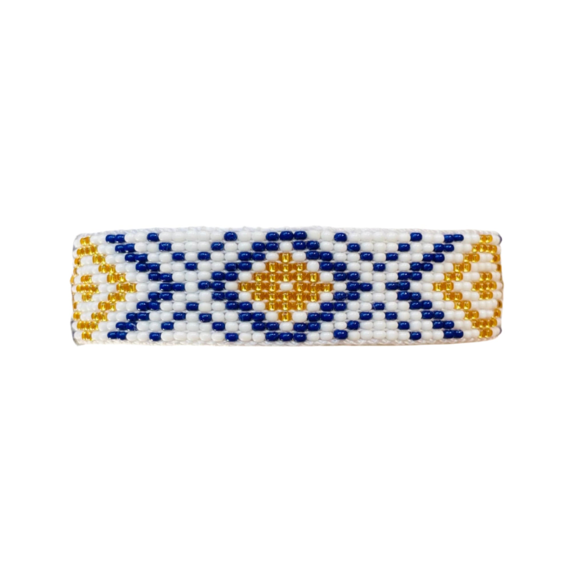 Handwoven bead by bead on a traditional loom, this bracelet embodies the artistry and precision of Kioni's artisans. Crafted with premium glass beads, its intricate lines and flawless design are a testament to the meticulous craftsmanship that defines our creations.