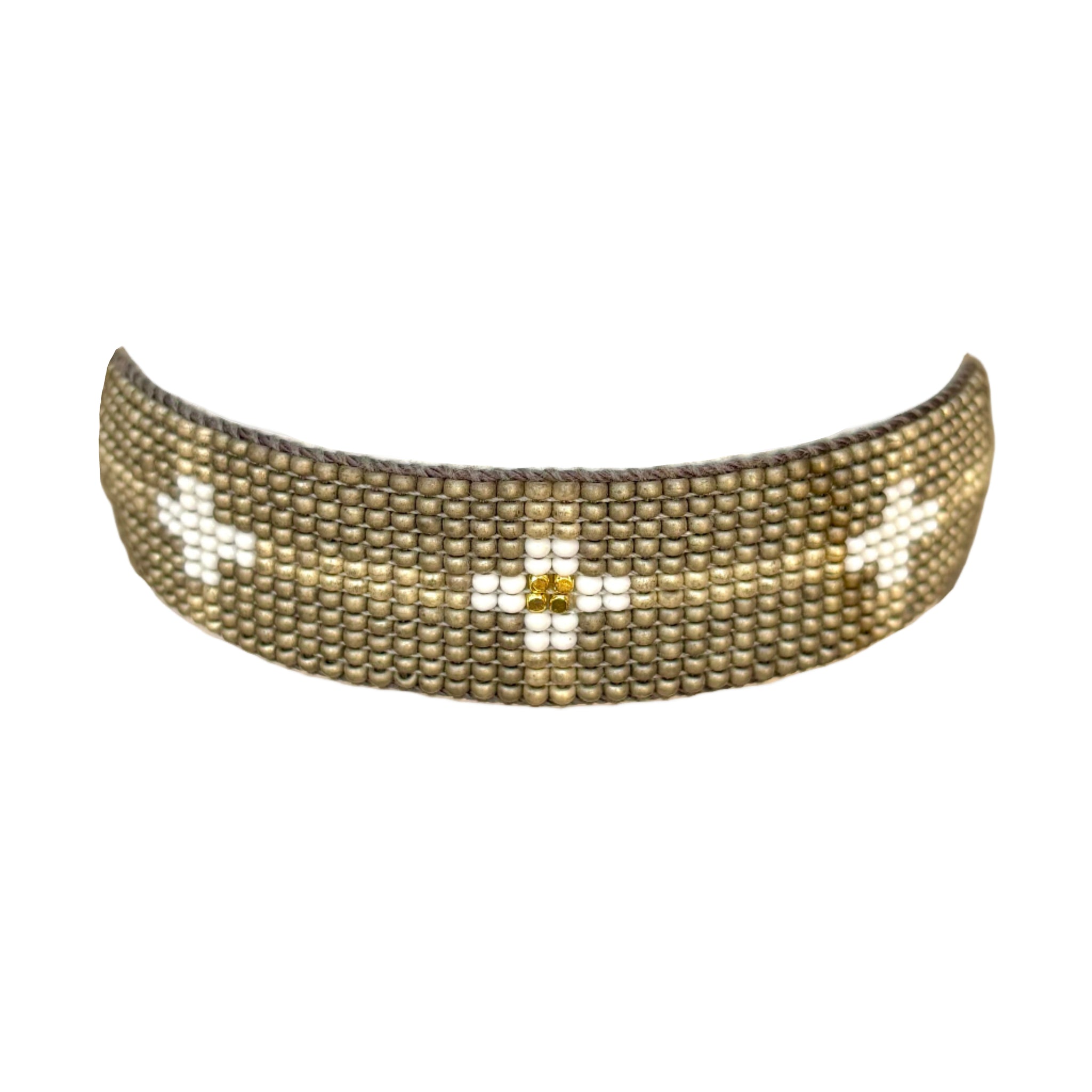 Njengoba yenziwe ngezandla ngobuhlalu obumhlophe obumangalisayo obunobuhlalu obunamakharati angu-14 acwecwe ngegolide kumaphethini ayisiphambano, leli songo liwubufakazi obunamandla bamasiko amibalabala ase-Afrika. Ubuhlalu obulukiwe ngobuhlalu ku-loom, leli songo libonisa imigqa engu-12 yobuhlalu obubekwe kahle, ebonisa ubuciko obuyinkimbinkimbi bezingcweti ze-Kioni.